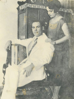 Pareja antes un Guardaropa.