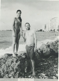 Cynthia Pérez Amador y su padre Florencio Pérez en las playas de Bocagrande.