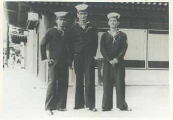 Jaime Sánchez Barbosa con dos marineros más en Honolulú, Hawái.
