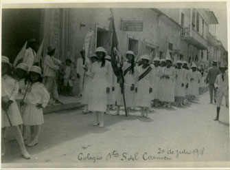 Celebración del día 20 de Julio, estudiantes del Colegio Nuestra Señora del Carmen, en Cartagena, Centro.