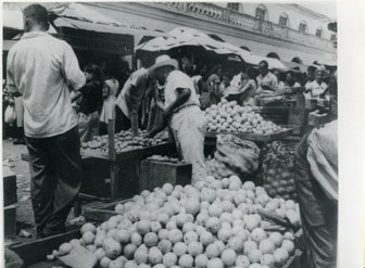 Antiguo Mercado público de Getsemaní, se aprecian vendedores comercializando sus productos.