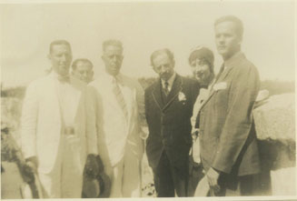 Guillermo Valencia, acompañado por Matilde de Pombo, Benjamín Porto, Ignacio Villareal.