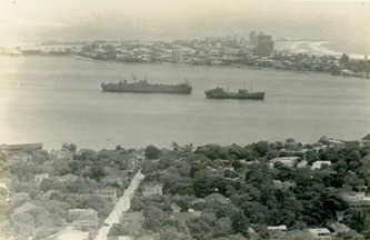 Buque en la bahía, vista desde Manga hacia Bocagrande