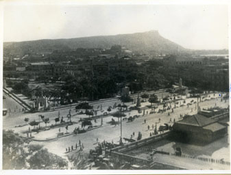 Vista parcial de la ciudad. Camellón de los Mártires y parque del Centenario se observan en la toma. Se ve el Cerro de La Popa en la distancia.