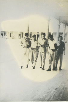 Alumnos en el Pasillo del Colegio Fernández Baena, al fondo se visualizan los salones de clases.