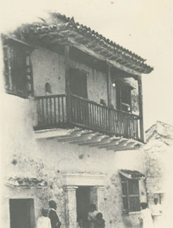 Casa de dos plantas con balcón colonial.