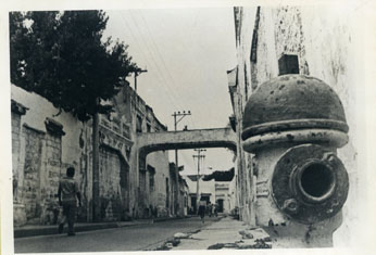 Calle de la Sierpe en Getsemaní. el puente fue parte de la fábrica de la Jabonería Lemaitre que se incendió.