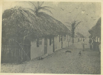 Casas en el barrio el Cabrero, construidas en bareques y techos de palmas, calles destapas.