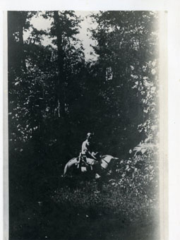 Un hombre a caballo en la espesura del bosque caballo buscando donde ubicar la tubería del oleoducto Barrancabermeja – Cartagena, construido por la Andian National Corporation entre 1923 – 1926.