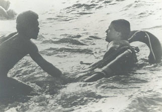 Salvavidas rescatando a bañista en las playas de las tenazas. Cartagena de Indias.