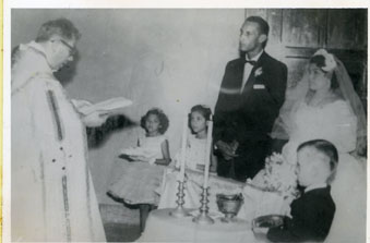 Aparece el padre en la ceremonia del matrimonio de una hermana de Socorro Martínez. Acompañada de su hija mayor Amanda Tatis y los pajecitos.