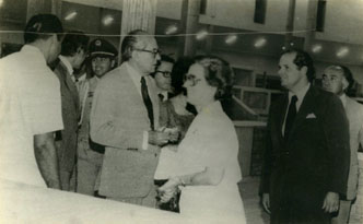 El expresidente Alfonso López Michelsen, Amelia Stevenson de Calvo y Raymundo Angulo Pizarro en la inauguración del mercado de Bazurto.