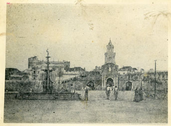 Puerta de entrada del Centro Histórico coronada con la Torre del Reloj, obra de Luis Felipe Jaspe terminada en 1888. En primer plano se observa la bella fuente donada por la colonia sirio-libanesa de Cartagena en el primer centenario de la Independencia. Victoria Fadul y Georgina Bechara leyeron el texto que acompañó el regalo.