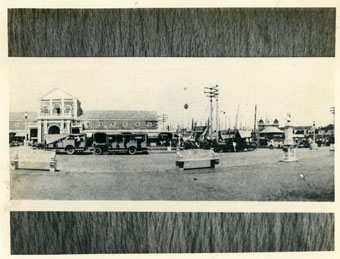 "Chivas" (buses) frente al antiguo Mercado Público de Getsemaní.
