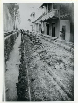 Calle de la Chichería, donde se aprecia las obras de instalación del alcantarillado.