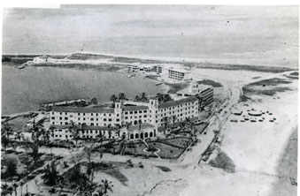 Vista aérea del Hotel Caribe, se aprecia su fachada frontal, en el barrio de Bocagrande, sobre la avenida San Martín.
