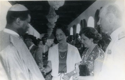 Josefina de Gómez Naar y Aida de Gossaín saludan al Cardenal Bernardin Gantin.