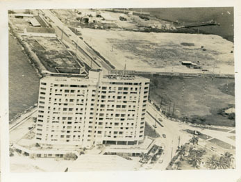 Vista aérea de la entrada de Bocagrande con el edificio Seguros Bolívar.