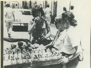Chaza de frutas mango y ciruelas, las estudiantes Claudia Espinosa J. y María Clara Muñoz de López.