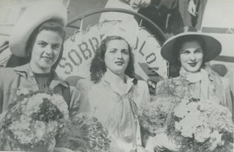 Las candidatas del Concurso Nacional de Belleza del año 1947, Señorita Nariño Enriqueta Guerrero Rodríguez elegida Virreina Nacional, y la Señorita Bolívar, María De La Piedad Gómez Román, elegida Señorita Colombia, y a la derecha Señorita Caldas Beatriz Ronga Santamaría, tercera princesa.