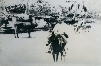 Juan Trucco en su Hacienda Buenavista montando su caballo