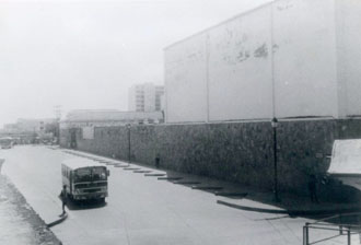 Vista del almacén. Se observa el transporte urbano de buses en el interior de las Murallas, del barrio San Diego o Santo Toribio.