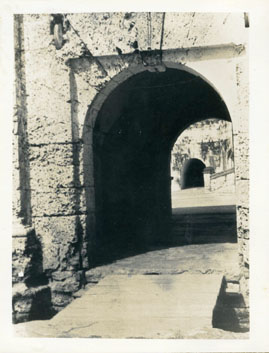 Arco de entrada de San Fernando, se ven ruedas de las cadenas que usaban los españoles que protegen la bahía de buques enemigos.