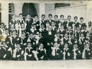Grupo de niños recibiendo su primera comunión en el Colegio La Salle.