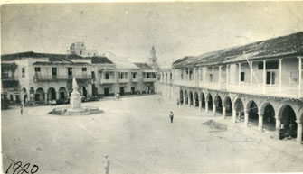 Esta plaza ha llevado varios nombres: primero se llamó plaza del Mar, y plaza de la Marina, por estar el primer muelle ubicado muy cerca de ella. Después se llamó plaza de la Contaduría, por estar la Casa de la Real Contaduría en el marco de la plaza. Es la casa de dos plantas que se observa detrás del monumento de Colón. Esta casa se llamó también Casa de la Isla, por ocupar toda la manzana. Hoy esa casa no existe porque fue demolida por la Andian National Corporation, en 1926, para construir en ese lote un edificio de cinco pisos para sus oficinas.
