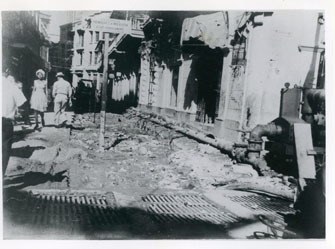 Aparece la esquina de la Calle del Tablón en el centro histórico, en la ejecución de las obras de alcantarillado por la compañía constructora "Olap Conscaribe", al fondo el antiguo almacén Tía.