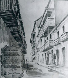 Pintura en acuarela de la Calle del Tablón baldosa con el poema de Luís Carlos López, " El Tuerto López" cerca al lugar de su nacimiento.