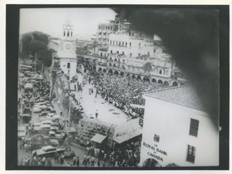 Manifestación política en la Plaza de los Coches, frente a la Torre del Reloj.