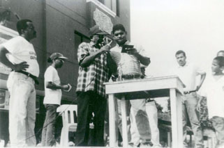 Se observan las personas dirigiendo la celebración de la jornada cívica, calle 20 de Julio en el barrio Canapote.