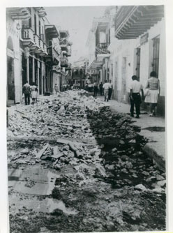 Calle San Agustín, en el centro de la ciudad, en las obras de construcción del alcantarillado de la ciudad, se aprecia en la imagen los escombros a lo largo de la calle.
