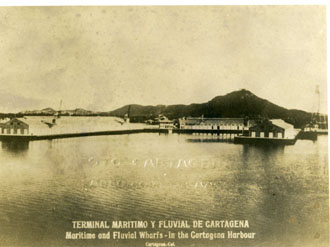 Vista del Terminal Marítimo y fluvial de Cartagena al fondo observa el Cerro de la Popa.
