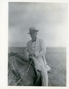 Don Fernando Vélez Danies; cabalgando desde el tren hacia la casa de “Aguas Vivas”.