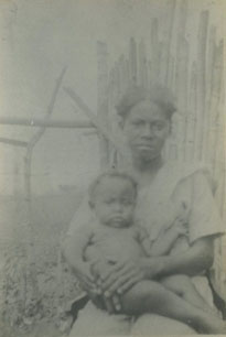Una señora con un niño en las piernas /