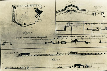 Plantas y alzados del Fuerte de San Sebastián del Pastelillo y del Baluarte de San José en 1714.
