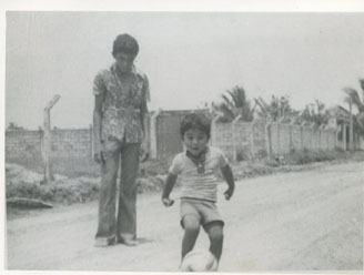 Aparecen dos niños jugando en la Calle 73, al fondo se aprecia la Casa Fiscal.