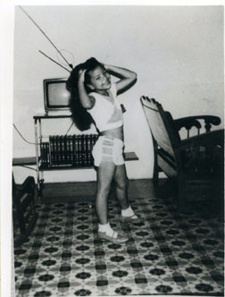 Cynthia Ferrer Bermúdez posando para la fotografía en la sala de su casa.