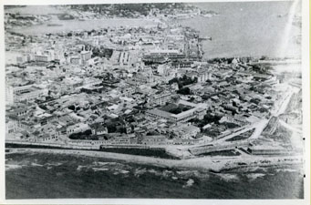 Se aprecia el centro histórico de la ciudad y el sector amurallado, y la Avenida Santander.