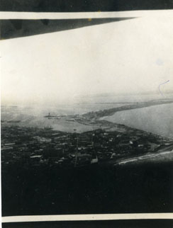 Panorámica aérea desde el Centro amurallado hacia Bocagrande, escoltada por la bahía, y edificaciones.