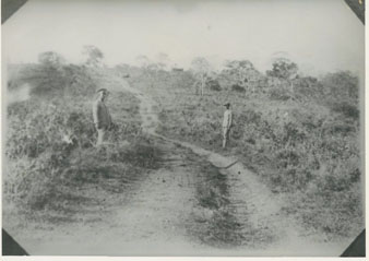 Un soldado y amigo en el campo. Su carro está en la distancia.