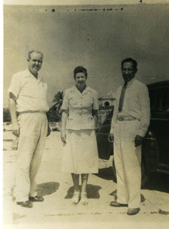 Señor Max Edrington, subgerente de la Corporation Andian, con el Señor Gustavo Delgado y la señora Alicia, en las murallas.