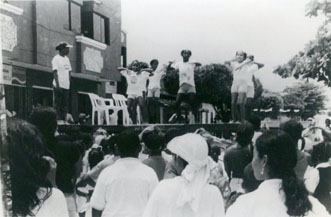 Presentación de baile en la jornada cívica de la calle 20 de Julio del barrio Canapote.