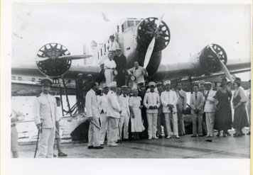 Avión Fokker en Barranquilla con oficiales y miembros de la Aerolínea.