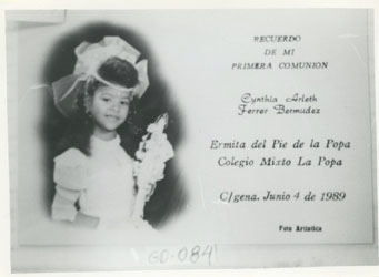 Recordatorio de la primera comunión de Cynthia Ferrer Bermúdez.