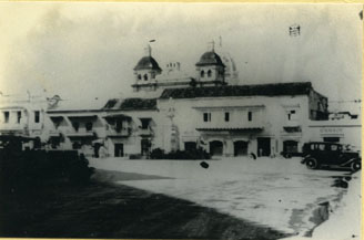 Plaza de la Aduana, al centro la estatua de Cristóbal Colón, al fondo la cúpula de la iglesia de San Pedro Claver.