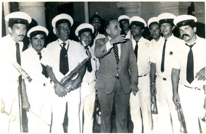 Banda Departamental, en el centro el doctor Arturo Matson Figueroa Gobernador, y el saxofonista Héctor Velásquez.
