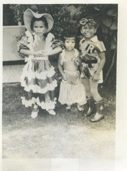 Carlos Iriarte Romero, Cynthia y José Carlos Ferrer Bermúdez, en una fiesta de disfraces.